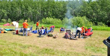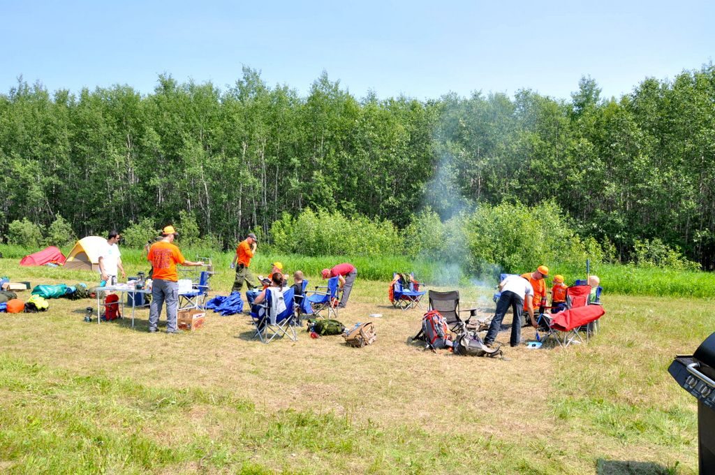 The Cold Lake Search and Rescue team enjoys a well-earned break with a barbecue and campfire lunch after a day of training in the field.